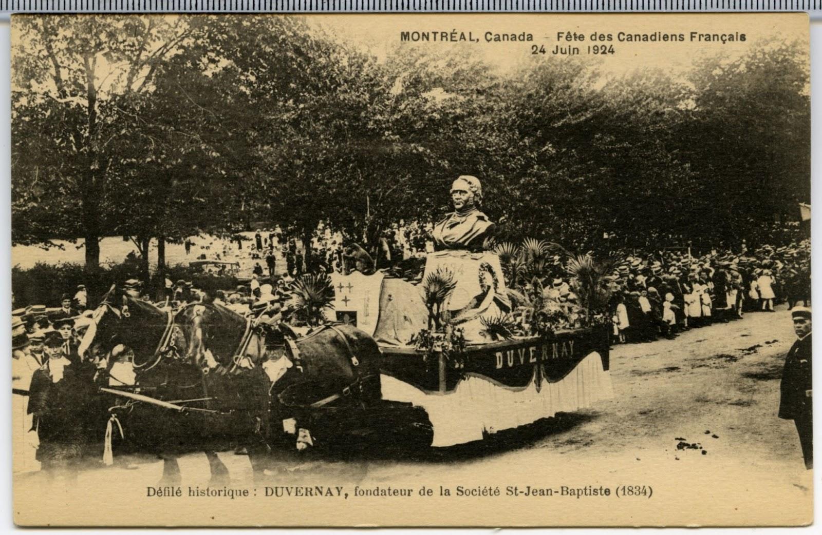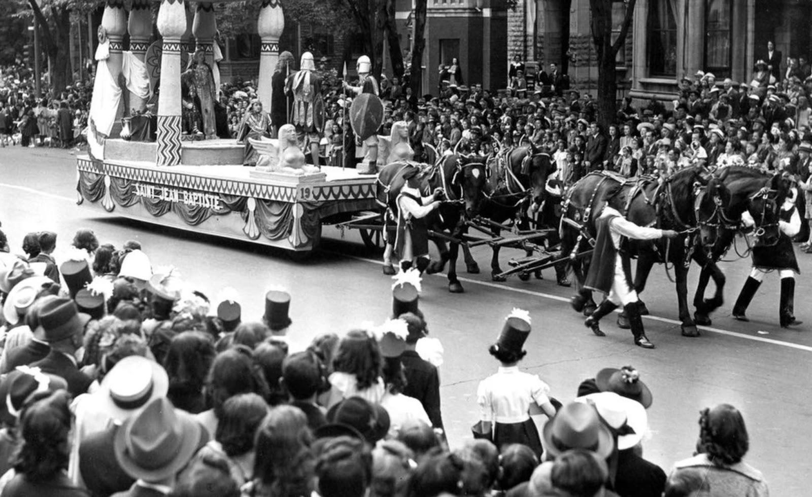 В 1939 году в парке Лафонтена в Монреале под общей темой «Канада осталась верной» было представлено две песни: «Isabeau ou l’anneau fatal» и «J’ai cueilli la belle rose». Народную музыку снова чествовали в 1950 и 1952 годах. Квебекский шансон в мировом контексте был представлен в рамках «Международной личности Квебека», темы празднований 1967 года. В следующем году Жиль Виньо открыл парад пением «Mon Pays». В 1970 году необходимость изменения формата и значительные политические беспокойства заставили власти прекратить традиционный парад. Однако он был восстановлен в 1990 году под лозунгом «Тридцать лет тихой власти».